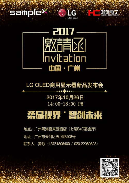 10月26日,广州粤海喜来登酒店,“柔显视界·智创未来” LG OLED商用显示器新品发布会,不见不散!
