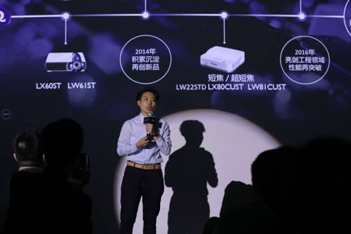 继端木晓斌后,明基中国产品管理中心产品经理张雅婷女士,进一步介绍了明基激光投影战略布局。据介绍,明基2012年就推出首代蓝核激光投影机LX60ST和LW61ST,成为“新光源革命”旗手。此后明基坚持技术攻关,年年推陈出新,又面向教育行业和工程应用——两大最有机会接纳激光投影技术的细分市场——进行了深入调研与分析,并推出富有针对性的激光投影产品,再根据反馈不断改进优化。同时,明基还在促进激光模组能效提升、增强产品解析、优化色彩表现、改善光学设计等多方面,累积起相当精实的技术优势。
