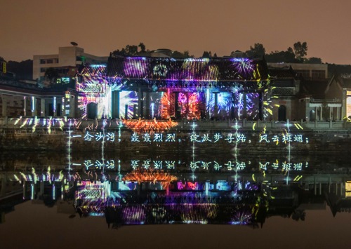 Vivitek(丽讯)在2016年广州灯光节分会场沙湾古镇打造了《梦田沙湾》3D投影秀