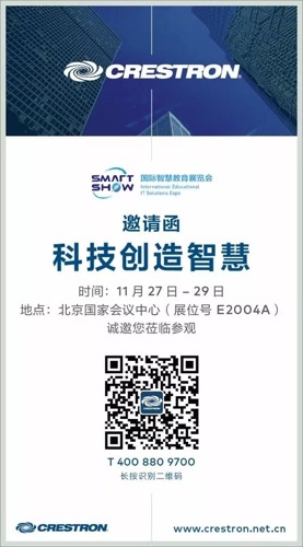 为让更多顶尖技术学院能够充分了解与体验快思聪无与伦比的教育解决方案,快思聪中国将于2017年11月27日至11月29日,亮相国际智慧教育展览会,期待您的拨冗光临!参与方式,请扫描下方二维码!~~~