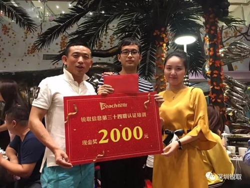 在18日的结业晚宴上,锐取信息高级领导人共同为本期优秀学员颁发了奖品,学员们个个笑逐颜开,度过了一场别开生面的结业典礼。