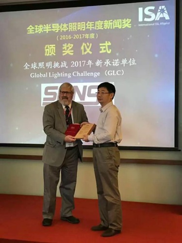 经过国际半导体照明联盟(ISA)“全球半导体照明年度新闻”专家评审委员会的评审,由全球照明挑战工作组和国际半导体照明联盟联合申报的“13家公司60亿LED照明产品销售新承诺,提高能效,减少碳排放,积极应对全球气候变化”新闻荣获2017年“全球半导体照明年度新闻”。上海三思积极做出这一承诺并且加入了全球照明挑战计划。在2017年11月1日北京举行的国际半导体照明联盟(ISA)成员大会上,荣获2017年“全球半导体照明年度新闻”的殊荣。