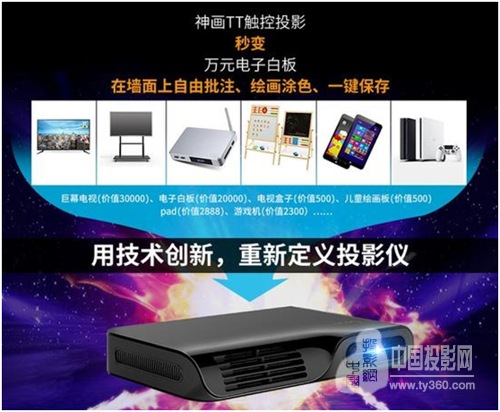 在说到还有两天就结束京东众筹的重量级旗舰产品神画TT触控投影前,先聊聊今天不仅卷席了微投行业,也即将跨界抄底打劫电子白板行业的神画科技。小编首先蹦出的一个想法是手机。为什么这样说呢?试想一下,作为最初的手机,仅仅是通话功能,之后延伸出来的功能何其之多,短信、彩信、拍摄、闹钟、秒表、录音、手电筒,附加的功能不胜枚举……而随着手机日益成为用户生活的中心,被它抄底淘汰而走出我们生活的其他电子产品又是何其之多:手表一度沉寂,因为大家不再看表看时间,还有多少人家里有闹钟呢?手机闹钟功能全面而强大!而至于随着手机拍摄的日益强大,几乎将曾经风靡一时的卡片机彻底赶尽杀绝,甚至连现在的单反、单电相机也被手机摄影弄得不得不创新改变以重新适应被改变的市场和用户喜好……手机绝对是一个垂直硬件向纵向演化之后变的无所不能的经典代表。如今,似乎,在神画科技不断大胆探索不断推陈出新背后,小编似乎又看到了另一个垂直硬件即将重演同样的好戏,不得不感慨,历史总是惊人的相似。