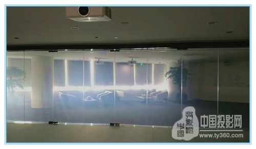 该项目的亮点是,爱其EK-500U投影机巧妙的和智能电控投影玻璃相结合,作为商务及办公隔断应用,可有效切割办公区域空间的同时,又可轻易选择空间的私密性和开放性。这种设计已经成为国内一些企事业单位、公司、酒店,当今时尚流行的一种全新设计。