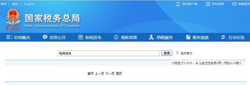 而且这个意见对暂免征收增值税和营业税的税收扶持政策,国家税务总局并未注明出处。以下为以电商免税等关键词在国家财务总局网站搜索结果,显示为零。这表明所谓的“电商免税”政策,只是国税系统内的不成文做法,并不是明确的正式法律法规。