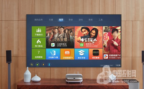 无需下载影片。明基i920内置安卓系统,整合了爱奇艺、搜狐、电影网等多方资源,包含综艺、电视剧、体育、电影等各个频道,每周资源持续更新,只需通过简单的搜索,就可以轻松查找到自己需要的视频内容。