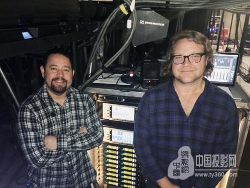 Bruno Mars的主扩混音师 Chris Rabold(右)和监听工程师 Ramon Morales(左)在使用Sennheiser 数字9000无线系统。