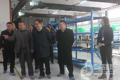 图4 绵阳市彭宇行书记(前排左三)、副市长元方(右二)等领导参观中视迪威生产线