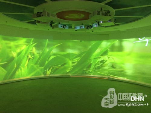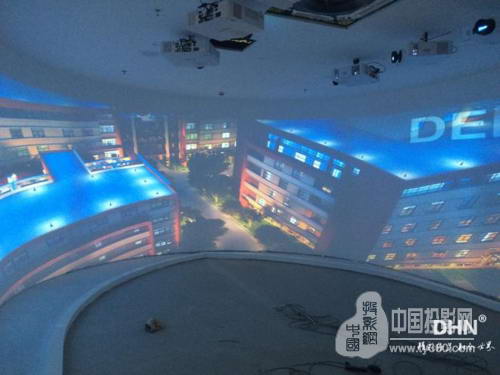 中共天津市滨海新区区委党校为了展示党的历史发展和反腐成果决定在展厅内规划一个8台投影机的U形投影融合和一个7台投影机的270°投影融合,现场使用的是6000流明XGA的LCD工程投影机,配合我们DHN-DK517做融合,客户对现场的效果非常的满意。