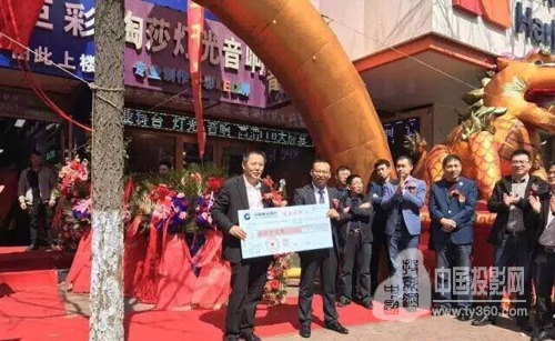 强力巨彩董事长朱志强先生为安徽跃达、黑龙江雷石电子各送去十万开业大礼