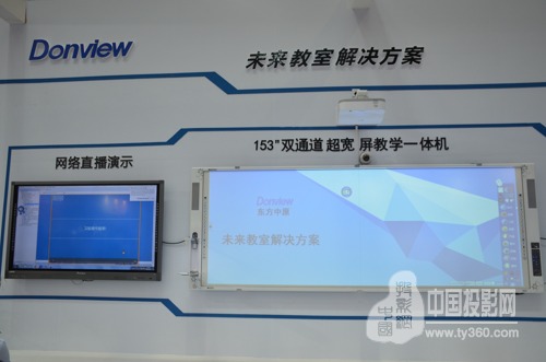 Donview(东方中原)153寸双通道超宽屏电子白板未来教室解决方案,一台投影机就秒杀了两台投影机的效果,超越了传统的4:3、16:9、16:10的技术格局。突破了传统的技术局限,以16:6的用户最佳观感方式呈现,确保教育行业用户对大尺寸的应用需求。