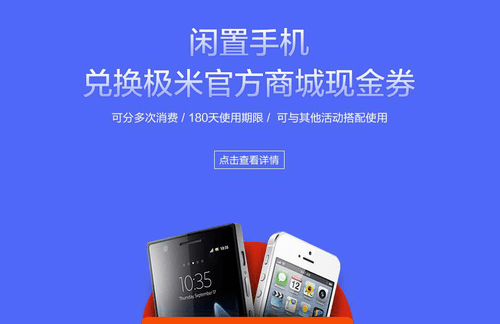 现在,参与极米手机回收置换计划只需要四个步骤:1、在线估价,提交换新申请;2专业质检爱回收进行质检并确认报价;3、旧手机回收完成后,用户获得兑换码;4、登录极米官方商城,凭兑换券兑换产品。回收订单成交后,爱回收将以短信的形式推送“手机回收置换计划”兑换码,届时用户登录极米科技官方网站“手机回收置换计划”页面,完成极米官方商城现金券的兑换及绑定。收到爱回收的活动兑换码后,须在 30 天内登录极米科技官方网站兑换为极米官方商城现金券,极米官方商城现金券在生效后的 180 天内有效。