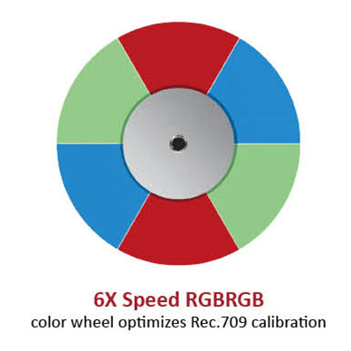 值得一提的是,顶级色彩的呈现更少不了六倍速RGBRGB 色轮利用特殊涂层对RGB光谱的片段进行过滤,以丰富红色、蓝色和绿色,从而优化Rec.709色彩;同时还对色调和饱和度进行增强,使投射的影像色彩流畅自然。此外,这种六段式色轮只有三基色,并采用对称设计,速度可达六倍,在实现卓越的图像还原效果的同时提高色彩刷新率。