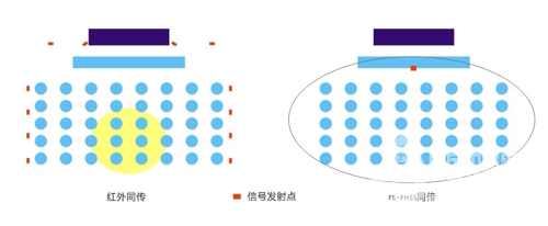 同传的主流技术分为IR和RF两种,针对以上场景,RF技术可以轻松解决以上众多问题。RF技术中,则以公信会议最新推出的FS-FHSS选跳频技术为主流。