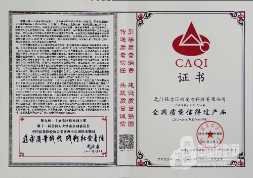 正因为在研发、采购、生产等环节管控上的孜孜不倦,强力巨彩获得广大消费者的认可,并得到中国质量认证中心、中国质量协会、中国工商行政管理局、ATC机构、FQLL机构、厦门市人民政府、厦门市经发局、中国半导体行业协会、中国照明电器协会等各界以及权威机构的认证与肯定。2016年强力巨彩被确认为“国家认定企业技术中心”,成为国内LED显示应用行业唯一获此殊荣的企业。
