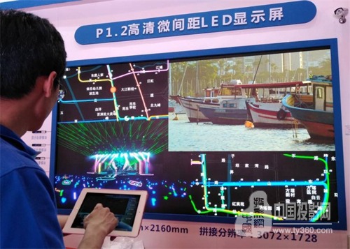 本次郑州安博会上的亮点之一是Voury卓华自主研发的微间距黑珍珠系列0.9mm的LED拼接显示大屏幕,采用了独立发光颗粒构成显示像素,属于分散光源,且每个灯管是恒流PWM控制,单灯亮度高,配合光感设备可对环境进行亮度自适应调节,有效提高了显示屏对比度,在产品先进性、可靠性、易用性、环境适应性、制造工艺、节能环保及使用成本等方面都具有突出表现。