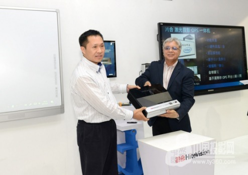 以全球首款超短焦激光OPS投影一体机为例,是鸿合科技在教育装备展现场与Intel联合发布的最新产品,本款机型完全基于intel新一代开放式可插接规范OPS-C+标准打造, 将ops和投影机功能合二为一,无需链接电脑,一台投影机即可实现原来两台机器才能完成的功能,将为用户带来更好提升智能交互教育体验。据悉,鸿合科技总裁张树江、高级副总裁龙旭东、Intel物联网事业部零售业务全球市场总监Rajnish Maini等双方领导均出席了此次发布仪式。