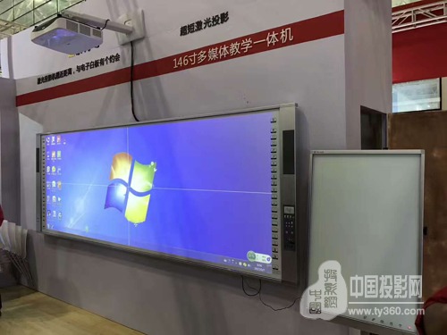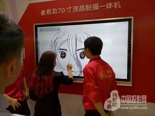 艾博德在展会现场推出的超短焦激光投影机,通过采用16:6的投射比,将146寸红外电子白板全面覆盖,吸引了国内外众多参观者的眼球,前来咨询洽谈者络绎不绝,获得了来自社会各界人士的一致好评。艾博德146寸电子白板,相对比传统的82寸电子白板,横向扩展了一倍有效书写面积,整个板面采用最新红外触摸技术,能支持教学内容双画面呈现,有效的实现了在教学中的“互动学习、小组学习”,同时超宽的板书页面有利于多文档对比。不少教育人士称赞不断,表示该系列产品值得在学校进行推广。