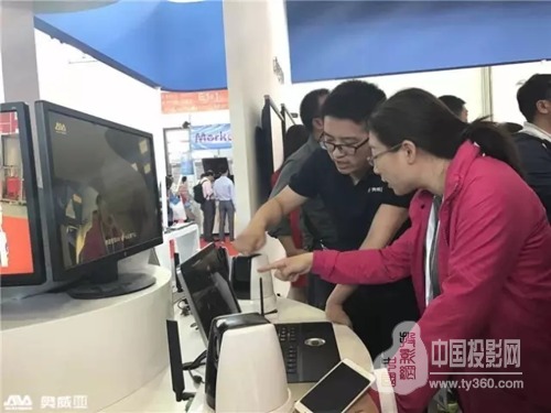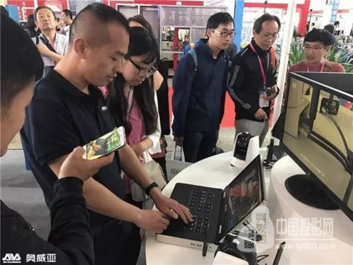 奥威亚工作人员为与会人员演示产品操作