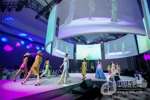 晚宴后半部分的走秀时间,双面弧幕投影方案也同时担起了“舞美”和“直播”的职责。近距离的走秀直播画面和美轮美奂的图片在弧形屏幕上切换投射,高清画面色彩纷呈,让舞台动起来,走秀更精彩。