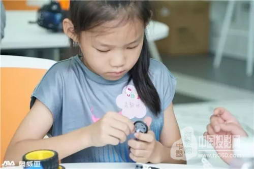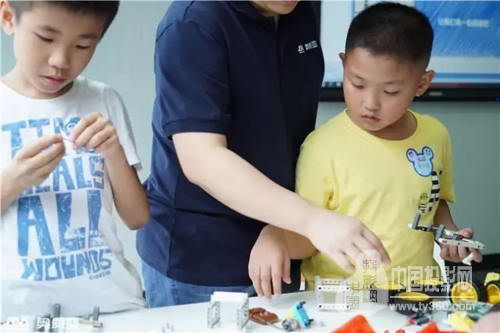 而第二小组,7岁到10岁的孩子则会交给专业的辅导老师,挑战难度更高的战车乐高玩具。第二组的战车模型的乐高玩具是一个包括塑料积木、电子模块、手动遥控器等几十种零件的工程积木。孩子可以在家长、辅导老师的指引下,充分发挥自身的空间想象能力和动手操作能力,将零散的积木变成可移动、可遥控的战车玩具。