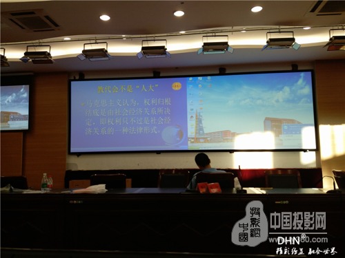 该报告厅采用正投模式,应用DHN第三代无缝融合拼接技术,对图像进行几何校正、自动色彩校正、边缘融合处理,弥补2台显示投影机之间误差(亮度、色度、色温、几何失真等),将输出图像误差调整为0,在长7m*高2.7m的画框幕上形成一个巨型、连续、无缝拼接、无色彩差异的完整画面,为教育事业提供完美视觉支持。
