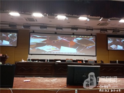 江苏省南通如皋市安定小学,前身为公元1747年创建的雉水书院,现今安定小学名师众多,团队精良,需要一个大型的学术报告厅来用作平时的会议、学术报告。配合南通现代化教育理念,为国家培养更多的人才,该校报告厅于近日引进一套专门用于会议、学术报告的大屏幕投影融合多媒体系统,该系统由两台投影机搭配DHN DK517无缝融合系统拼接而成。