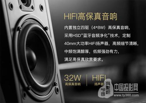 另一个区分投影机和激光电视的角度是对用户听觉需求的满足。传统投影机产品的音响系统普遍表现差强人意,而激光电视则着力加强了在声音表现上的不足,目前在售的激光电视系统中,普遍搭配了高品质的HiFi级音响系统,保证了用户的听觉体验。