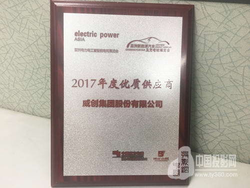 此外,在2017年亚洲电力电工暨智能电网展览会上,威创还荣获了由活动主办方中国南方电网南网传媒颁布的“2017年度优质供应商”奖项。