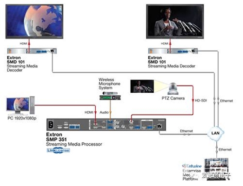 SMP 351 是一款高性能流媒体和记录处理器,可捕捉视音频信号源和演示内容,并作为实时的流媒体或记录媒体进行分配。它可接受 HDMI、分量视频、复合视频和可选的 3G-SDI 信号,能两个窗口同时处理选定的信号源。SMP 351 能够同时进行记录和流传输,并通过一系列传输协议和会话管理选项同时流传输两种不同的分辨率和比特率。全面的控制和配置特性使 SMP 351 非常便于集成、易于控制和操作。SMP 351 无需授权费用,具有较低的持有成本,为大型演示应用环境提供了灵活的高性价比解决方案。
