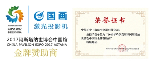 作为对于国家“一带一路”战略的积极响应,国家电网、中和集团、中石油、航空工业上电等多家单位成为了阿斯塔纳世博会中国国家馆的战略合作伙伴,其中航空工业上电成为了中国国家馆的金牌赞助商,上电旗下的中航国画激光投影机成为了阿斯塔纳世博会中国国家馆指定投影机,这也是历届世博会中国馆首次使用中国品牌的投影显示设备。