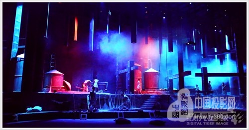 纱幕打开后是一个放大了的红缨子高粱穗舞台