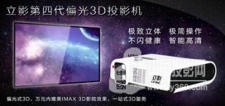立影第四代不闪式偏光3D投影机,结合了万达IMAX 3D显示技术,不闪健康,单机双镜头专利,是万元内3D效果最佳、操作最简单的3D投影设备;适合家用娱乐、商用办公、小型3D影院、KTV营利、多媒体教育等多元化场所。