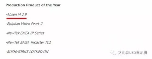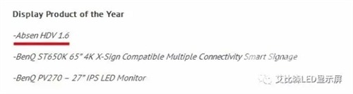 Absen HDV1.6 入围“全球年度LED显示屏”大奖
