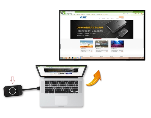 Q-share操作简单,连接快速,只需将小Q(发送器)插入笔记本USB接口,轻触按键即可实现内容秒传到大屏显示器,无需安装任何软件,无需连接繁杂的线材,更不用担心接口匹配的问题。这意味着参与会议的每位成员无需提前做准备,只要笔记本连接Q-share即可同时分享内容,随意切换,尽情展现精彩。