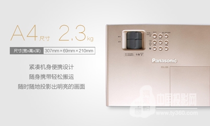 松下便携投影机的机身瘦身到一张A4纸大小,仅重2.3KG,外形小巧,携带方便、随取随用,真正成为移动办公人士的 “背包精灵”和“最佳拍档”。
