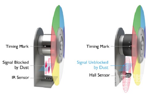 明基教育投影机的另一大“杀手锏”就是高超的防尘表现,我国幅员辽阔,很多地域干燥多尘,加上粉笔书写等因素,教室环境中粉尘严重,很容易进入投影机造成伤害。明基发现这一问题并通过各种技术得以解决,具有代表性的包括激光投影机LX82CUST与LW83CUST采用密封光机,防止小颗粒灰尘进入光机模组,并配备了升级的“复合材质滤网”,双面材质,双重保护;DX825ST配备“磁感应色轮”,防尘效果比普通红外提升多倍,信号传输不会被灰尘阻碍;以及DX808ST应用“凸型红外感应色轮”,不易积灰,信号接受更快更准。
