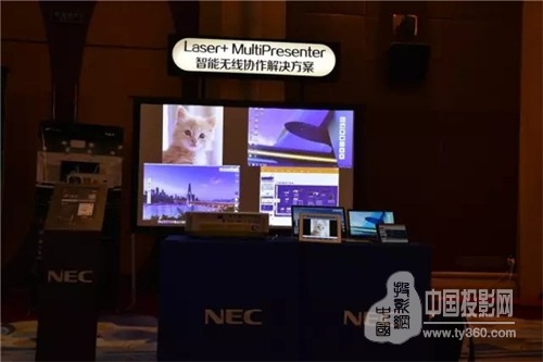 在现场,NEC除了Tilt Free异型融合解决方案和4K智能融合解决方案,还集中展示了多种工程投影机解决方案。由NEC P502HL+投影机内置的MultiPresenter软件功能的智能无线演示协作方案,无需复杂设置即可实现无线传输,极大的方便投影演示的连接。其凭借着强大的实用价值能够为行业客户提供最佳的无线应用体验,特别是为会议及教学培训等领域提供全面、高效、便捷的服务环境。