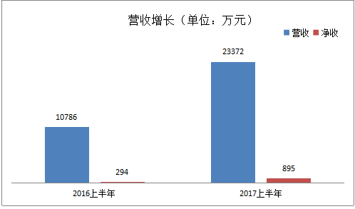 从盈利和运营方面来看,2017年上半年营收2.3亿元,与2016年的1.1亿相比,同期增长116.67%;归属于挂牌公司股东的净利润达895万元,与2016年的294万元相比,同期增长比例达203.88%;2017年上半年基本每股收益为0.1,2016年同期为0.03。
