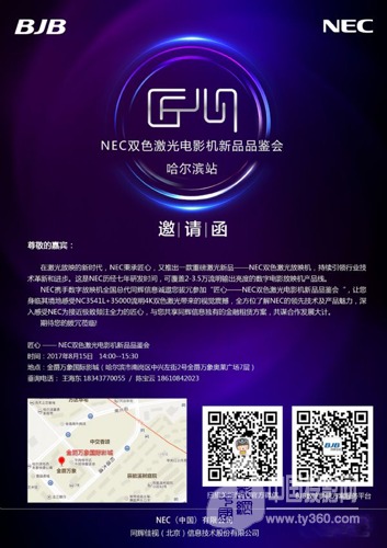 一北一南,一凉一热,一个以冰雕为荣,一个以麻辣著称,改变的是地点,不变的是同辉信息为您带来最佳视觉体验的决心。这个八月,NEC携手同辉信息,继续秉承匠心,在哈尔滨和重庆接连为您带来两场NEC双色激光电影机新品品鉴会及单色激光电影机1201产品展示会,紧张的行程只为让您体验到更加震撼的视觉效果,为您带来更为全面的金融租赁方案。