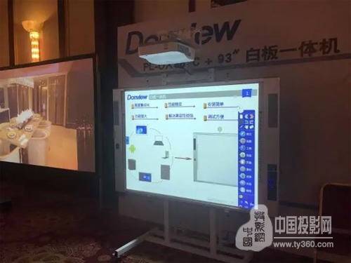 现场展示了东方中原Donview品牌的153寸电子白板双通道解决方案、白板一体机方案、一体机双板系统、常态化录播解决方案、直投短焦投影机演示方案、静态展示方案等。