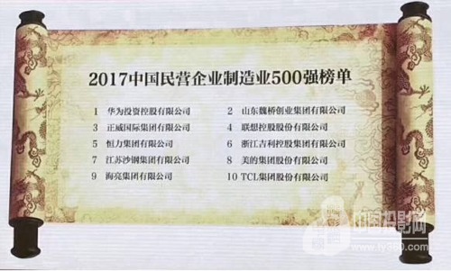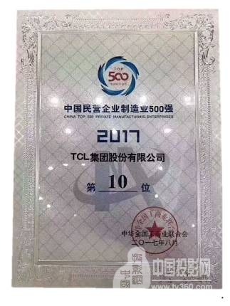 2017中国民营企业制造业500强榜单中TCL位列第十