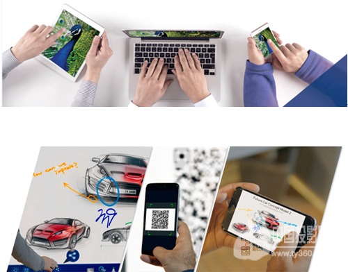 而且,和之前的surface hub、Jamboard不同的是,即使会议室没有网络,明基智能商务一体机也能支持包括Android、iOS、Android和Mac在内的四大平台系统的无线传屏,不需要外接额外的传屏硬件,也不需要把图片传到电脑上中转再投屏。如果需要下载会议记录,用手机扫描二维码就能直接保存到手机上,不再需要像以往那样要用U盘拷贝或上传到局域网指定文件内下载,避免将宝贵的工作时间浪费在不必要的等待上。