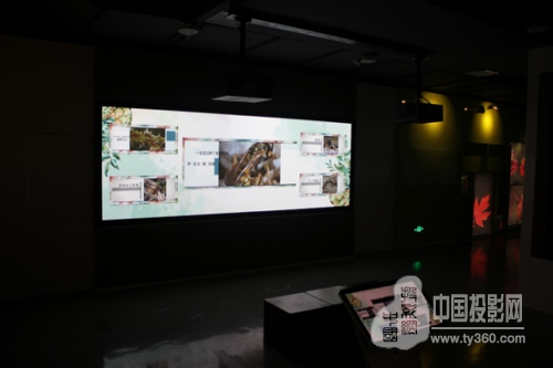 该展项采用2台索诺克Sonnoc船长系列工程投影机SNP-DSW700,通过拼接融合的方式实现了4000*1380MM的超大画面,结合Donview(东方中原)定制开发VIS交互软件,为观众打造了一个高度互动的互动界面;参观者可在辅助屏幕上选择动植物环保科普片主题,利用VIS交互功能推送至主屏幕播放。