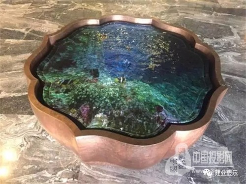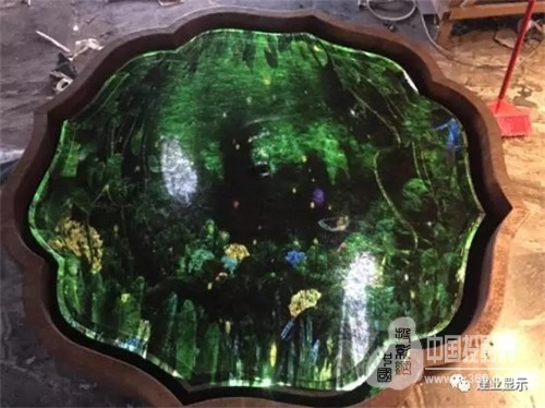 实现在直径1.2米的水中缸中通投投影进行成像,可以展示鱼游、荷花等效果。