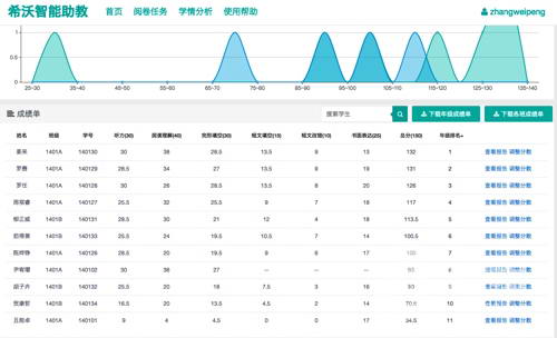 希沃智能助教在自动批改完试卷后,将自动生成班级成绩单,清晰展现全班学习成绩,老师再也不用耗时费力地手动统计成绩。