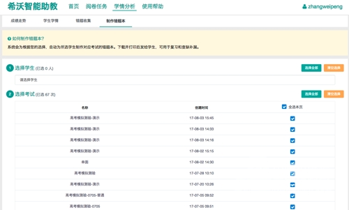 (选择特定学生后生成的错题本)