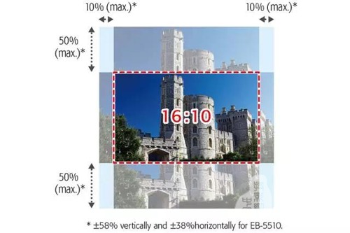 CB-5530U可以实现大范围的镜头移动:垂直镜头移动(上下)最大50%,水平镜头移动(左右)最大10%;这一功能不仅让用户调节投影画面时更加便捷,对于投影机和屏幕安装位置也有更多选择。