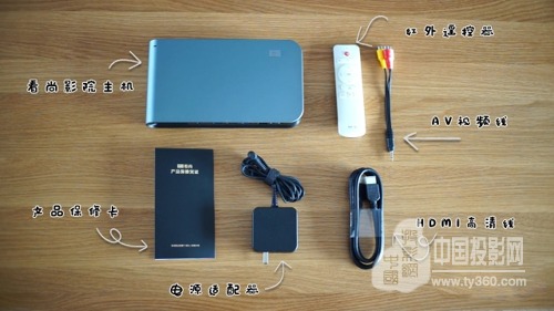 包装里除了主机外,还配有遥控器、电源适配器、HDMI高清线、AV视频线和产品保修卡。基本上所必备的东西,看尚都已经为我们准备好了。