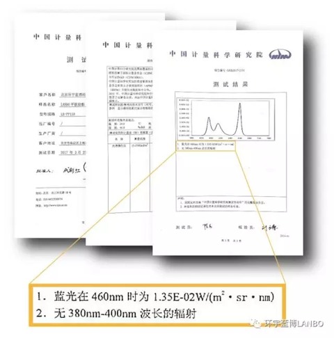 LANBO平板投影不仅有效的避免了环境光干扰的问题,还可以避免蓝光的伤害。蓝光属于高强度的短波,主要集中在460nm处,人眼长期观看,会对眼睛的黄斑处造成不可逆的损坏,是损伤视力最直接的“杀手”,LANBO平板投影自发光特性以及屏幕表面有专利屏幕保护,通过了权威机构“中国计量科学研究院”测试报告显示,LANBO平板投影的蓝光在460nm辐射亮度为0.0135W/㎡•sr•nm,远低于100W/㎡•sr•nm无危害的标准,同时相当于OLED屏幕蓝光辐亮度的1/10,此数据也表明LANBO平板投影对人眼的伤害,可以忽略不计。
